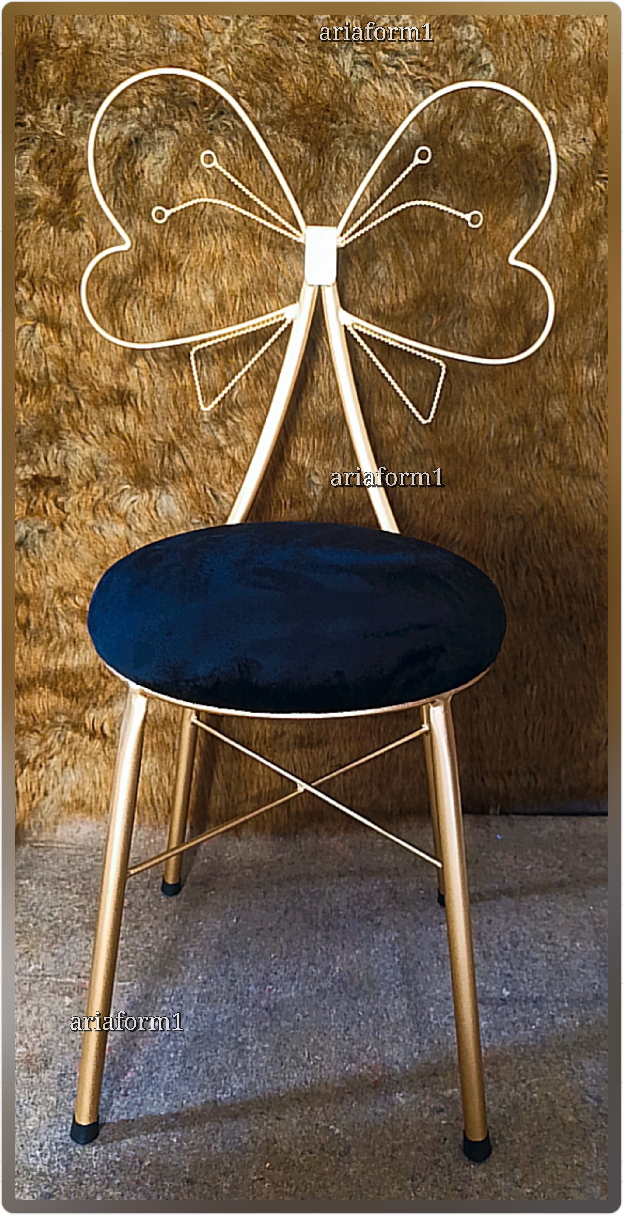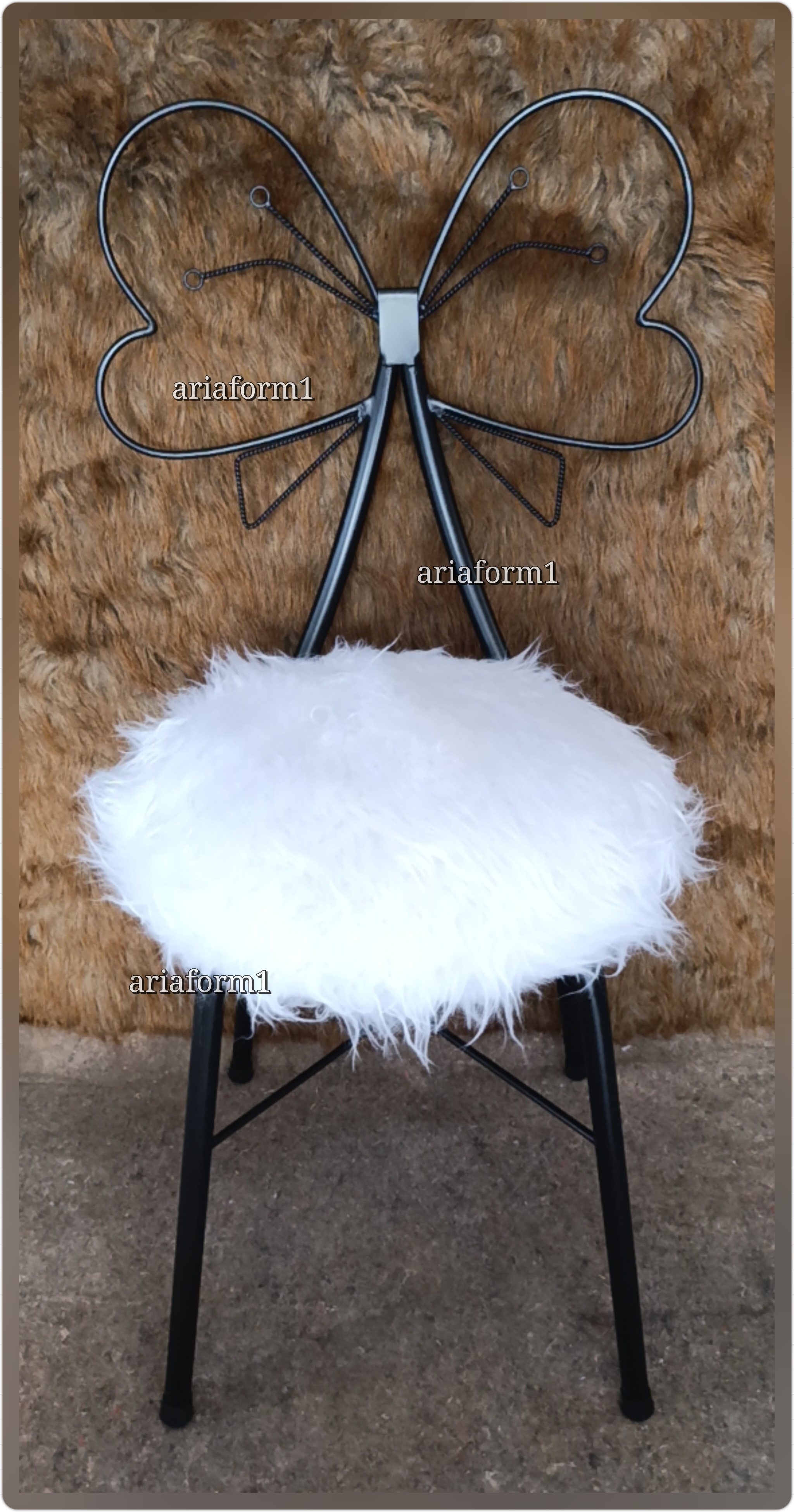 صندلی پروانه فلزی مدل فر ضخیم اریافرم،درتنوع رنگ نشیمن وبدنه،بسیار زیبا و دوست داشتنی وخاص و مقاوم،لاستیک زیر پایه،بسته بندی کامل و مطمئن،بدون تغییر رنگ