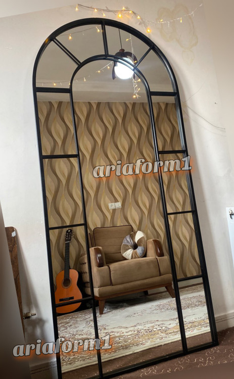 قاب آینه قدی گنبدی پنجره ای،ساخته شده با پروفیل۱۶×۱۶در دور قاب وپروفیل۱×۱قسمت پنجره قاب،نصب آینه آسان بوسیله بست های پشت آینه بدون نیاز به چسب،پشت قاب جای آویز به دیوار توسط پیچ یا میخ تعبیه شده ومخفی میباشد